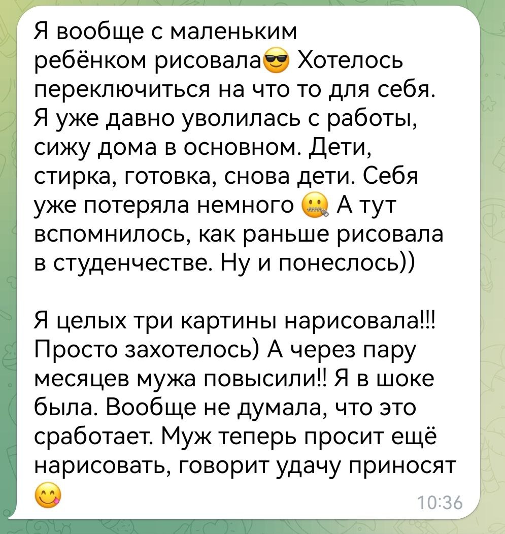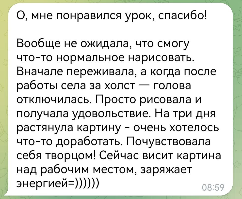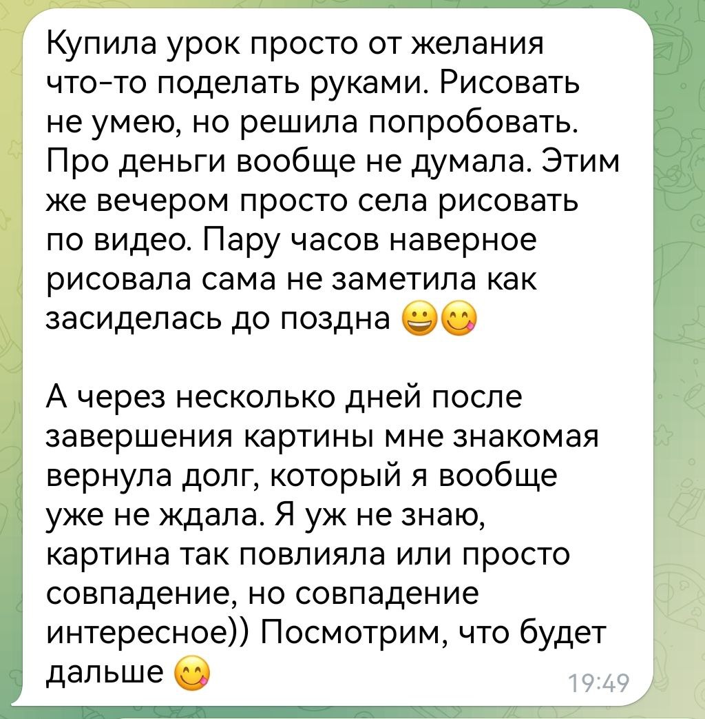 Многие мои ученицы начинали рисовать эту картину просто, чтобы расслабиться и получить удовольствие, сделать что-то своими руками. А потом с удивлением писали, как они работают.